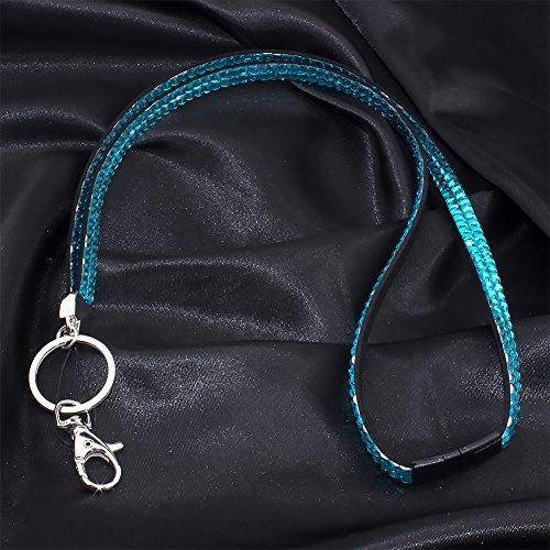 Soleebee 80cm Bling Strass Pelle Collo Cordini Cinghie per Porta Badge Retrattile per Carte di identità, Chiavi, Impiegati, Carta dello Studente, Chiave, USB, ECC. (Cielo Blu)