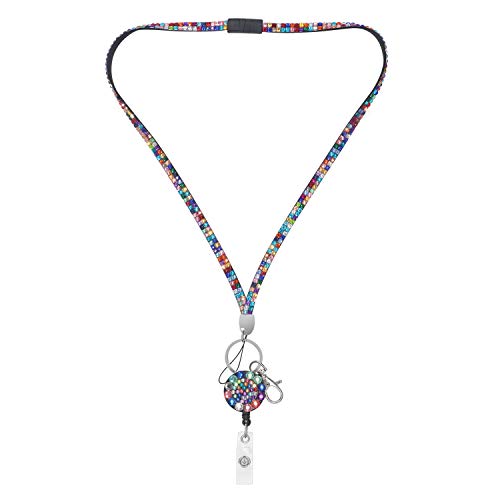 Soleebee 80cm Bling Strass Pelle Collo Cordini Cinghie Porta badge retrattile con Staccarsi Chiusura di sicurezza per Carte di identità, Chiavi, Impiegati, Carta dello studente, ecc. (Colorato)