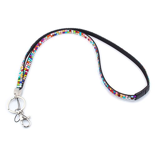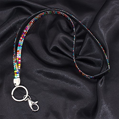 Soleebee 80cm Bling Strass Pelle Collo Cordini Cinghie per Porta Badge Retrattile per Carte di identità, Chiavi, Impiegati, Carta dello Studente, Chiave, USB, ECC. (Colorato)
