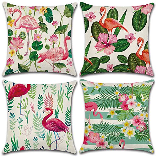 Soleebee Set di 4 Poliestere Biancheria Copri Cuscino Fodere per Cuscino Auto per Divano Letto Decorazioni per la casa Divano Federa Cuscino, 45 x 45 cm (Fenicottero)