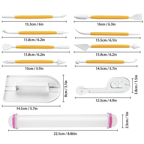 PACCHETTO che include 11 pezzi di stampi per decorazione di torte comunemente usati, come 8 pezzi strumenti di modellazione, 1 rotolamento perno, 1 lame leviganti, 1 goffratrice con 3 ruote.