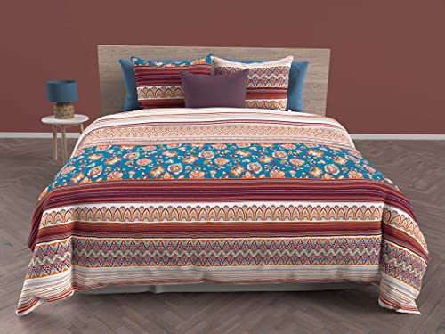 Soleil d'ocre Jaipur Coperchio di Consolatore + 2 federe, Cotone, Blu, 220 X 240 cm