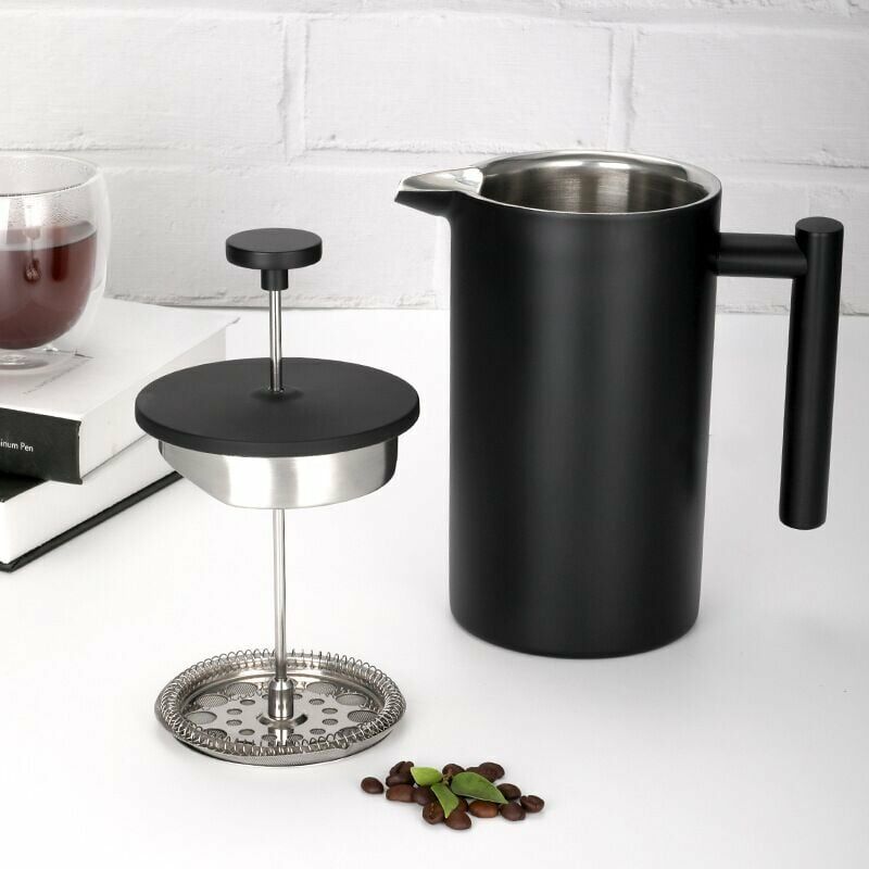la maniglia del vuoto adotta un processo di saldatura senza cuciture, isolamento termico e presa comoda. Il filtro ad alta densità dei pori può facilmente filtrare i fondi di caffè, la molla di compressione sagomata dell'anello assicura una pressione uniforme tra il filtro e la parete del vaso, il tre strati il sistema di filtraggio rimuove tutti i fondi di caffè