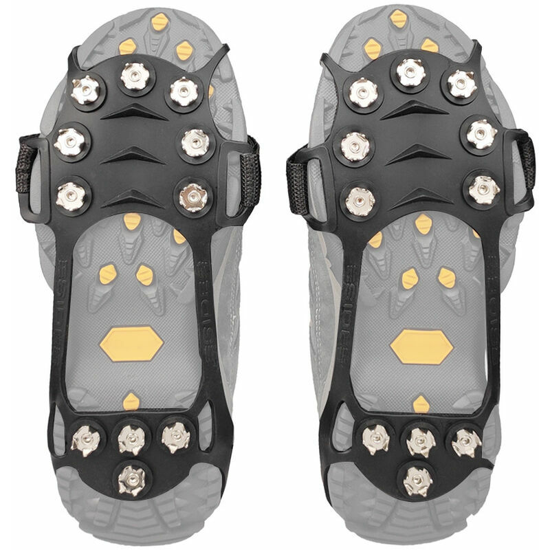 Le punte antiscivolo e anticaduta hanno 11 chiodi ad alta resistenza in acciaio inossidabile 304 di alta qualità, che aumentano la superficie combinata di chiodi in acciaio e gel di silice, in modo che i chiodi non cadano facilmente . La posizione strategica dei bulloni di trazione garantisce una distribuzione uniforme del peso e ofITe un'eccellente trazione su ghiaccio e neve. Tutto per una maggiore protezione e sicurezza. Materiale elasticizzato resistente in silicone di alta qualità, più resistente, 5 mm più spesso della normale gomma TPE, massime prestazioni sotto i -45°C, non si rompe, garantendo comfort e durata. Le tacchette sono dotate di un velcro in nylon regolabile, che può essere facilmente regolato e fissato saldamente alle proprie scarpe o stivali, e può essere ripiegato abbastanza da stare in una borsa o in un'auto. Versatilità: l'impugnatura per il ghiaccio ha forte trazione, eccellente tenacità e resistenza alla flessione. Il tallone e l'avampiede sono completamente