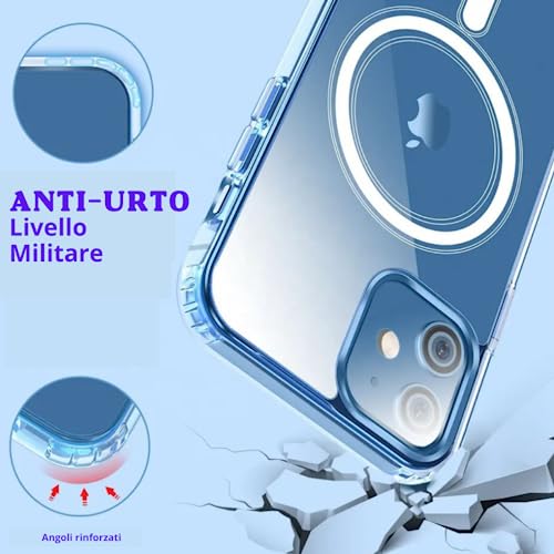 Soleilx Cover Magnetica per iPhone 12 - iPhone 12 PRO 6.1, Cover Magsafe Iphone 12, Custodia Trasparente compatibile Magsafe Protezione Militare Antiurto Resistente ai Graffi, Cover Indistruttibile