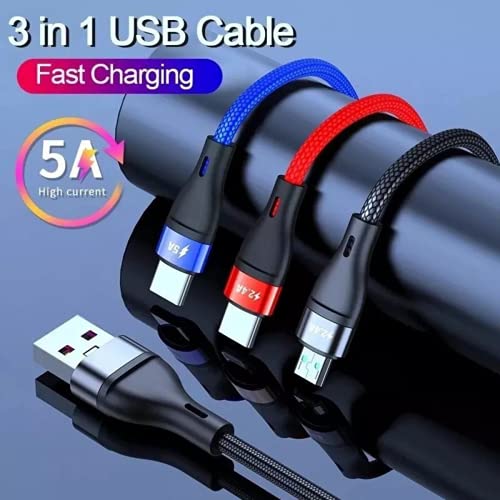 Cavo di ricarica rapida 3-in-1 multi USB 5A, con connettori Micro USB, USB-C e compatibile per Phone integrati. Adatto e Compatibile con la maggior parte dei dispositivi Android, ma anche alla porta di tipo C, un cavo soddisfa le tue tre diverse esigenze.