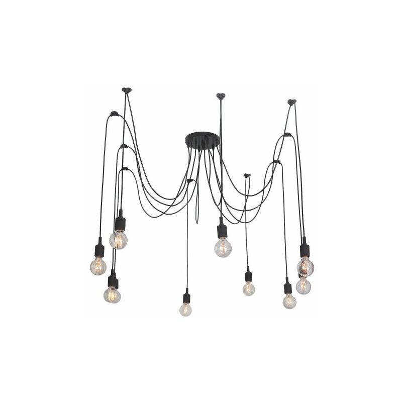 Soleto 10 a sospensione - la più grande delle quattro dimensioni delle lampade Soleto, è un design minimalista che non potrebbe essere più semplice. Questo prodotto è una struttura nera fissata al soffitto, da cui si estendono fino a dieci cavi molto lunghi. Ognuno di essi termina con l'ingresso di una fonte di luce. L'intera forma può assomigliare a un enorme ragno:) Sarà perfetta come illuminazione in un ampio soggiorno, in un ampio ingresso in stile moderno, così come in una grande cucina, arredata in modo piuttosto fresco. È perfetto per l'illuminazione e la decorazione di luoghi commerciali, come le sale dei castelli, per rivoluzionare il design degli interni con questa innovazione. L'altezza di ogni sorgente luminosa è regolabile, il che garantisce praticità. Eleganza e originalità: se è questo che cerchi, la lampada Soleto ti soddisferà sicuramente. Grazie al suo minimalismo, si abbinerà a quasi tutte le combinazioni di colori del tuo appartamento. Il nostro assortimento