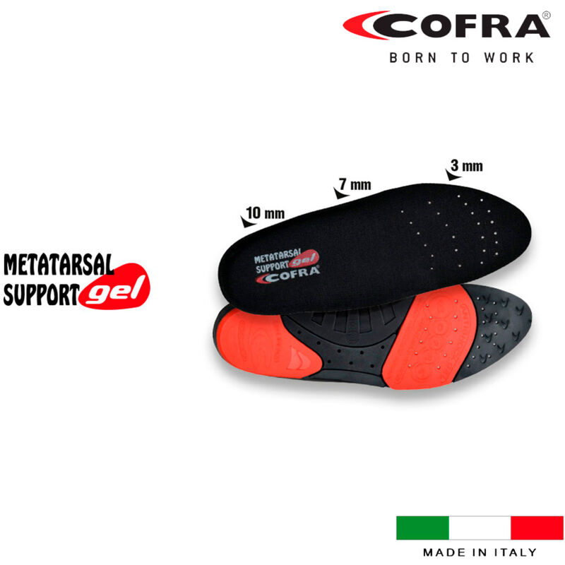 Soletta in gel di sostegno metatarsale taglia 47 cofra. soletta antistatica, anatomica e perforata, in poliuretano profumato, molto morbida, foderata in tessuto. isola dal freddo e dal caldo.
