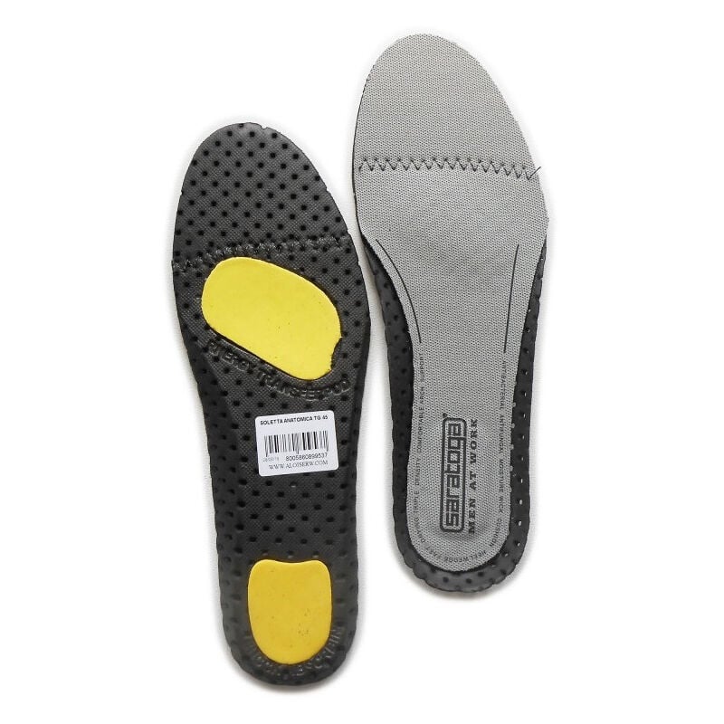Extra comfort - gel su plantare e tallone COS'È Soletta anatomica di ricambio per scarpe antinfortunistiche MaxiLogo. VANTAGGI Sottopiede anatomico, antistatico, lavabile, forato, antibatterico, traspirante, rivestito in tessuto dalle proprietà batteriostatiche che favorisce un'ottimale areazione e garantisce un effetto termoregolatore. La presenza sia sul tallone che sulla pianta della soletta, di isole in gel favorisce la capacità di assorbimento degli shock da impatto col terreno.