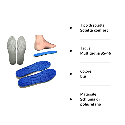 Solette Universali Scarpe Per Uso Quotidiano Ortopediche in Memory Foam, Ergonomiche, Ammortizzanti, Schiuma, Antishock, Per Uomo e Per Donna Taglia 35-46 (Blu)