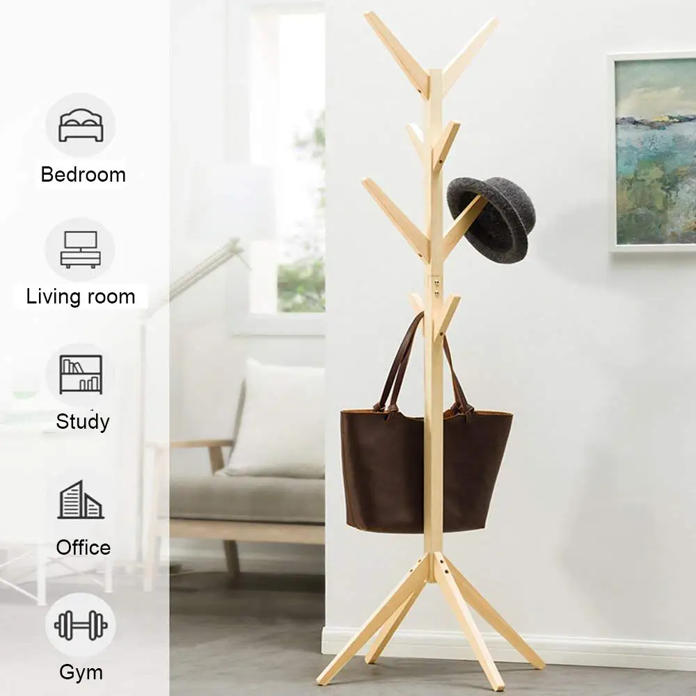Solid Wood Hanger Floor Standing Coat Racks 8 Hooks Home Furniture Storage Clothes Hanging Wooden Hanger Bedroom Drying Rack