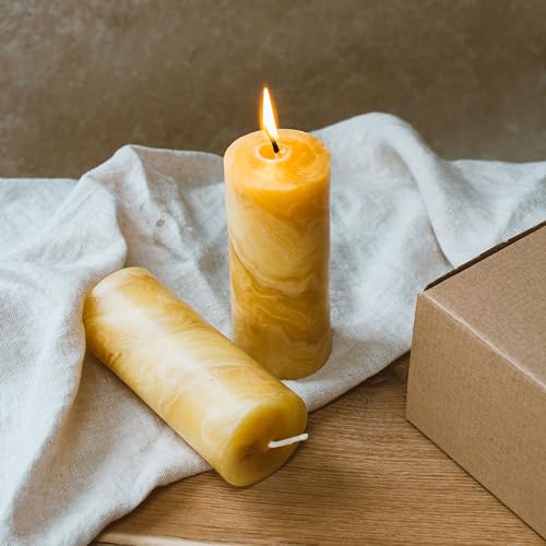2 Solid pilastro candele di cera d' api.100% cera d' api naturale fatto a mano, casa e candele. (Dimensioni: 50 Ø 125 H), perfetta idea regalo - Natural Living by Goldrick
