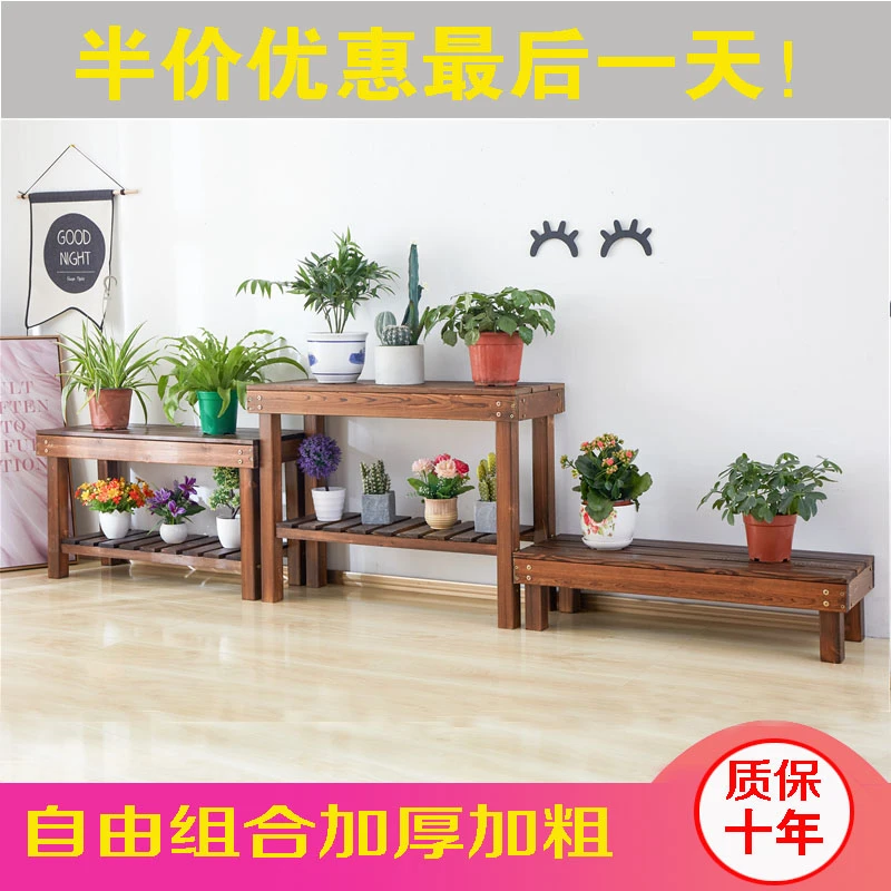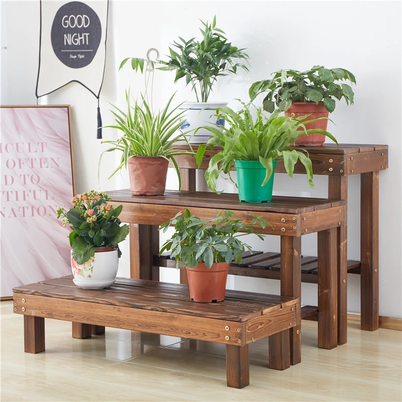 Solid Wood Quality Anticorrosive Wood Ground Fish Tank Assemble Flowerpot Frame Indoor Multi-storey Carbonization Wooden Rack