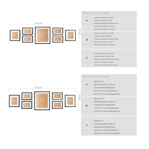 Ray & Chow Set di Solide Cornici in Legno per Foto - Set di 7 Cornici - Passepartout per Foto Inclusi - Larghezza della Cornice 2cm! - Nero