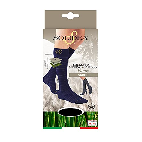 SOLIDEA Unisex Gambaletti Socks For You Merinos Funny Compressione Graduata 18/24 mmHg (Blu Navy, S)
