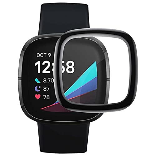 Soliocial 【3 Pezzi】 HD Trasparente Proteggi Schermo Compatibile con Fitbit Versa Sense, 【Copertura Completa】 AntiGraffio 3D Bordo Curvo Pellicola Protettiva Soft Smartwatch (Non in Vetro Temperato)