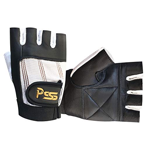 Sollevamento pesi IMBOTTITA BODY BUILDING RUOTA Chair Palestra Allenamento Guanti in pelle nero/BIANCO MEDIO (M)