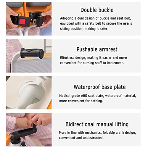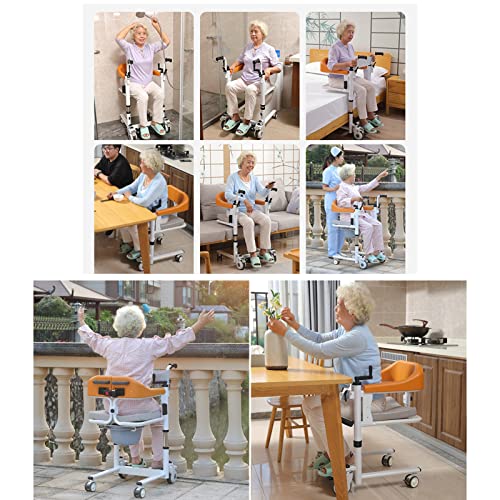 Sollevatore Portatile per Pazienti,Sedia da Toilette con Sedile Imbottito con Rotelle Altezza Regolabile,Sedia da Doccia Multifunzionale Comoda Sedia a Rotelle Manuale per Anziani Che Allattano