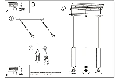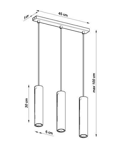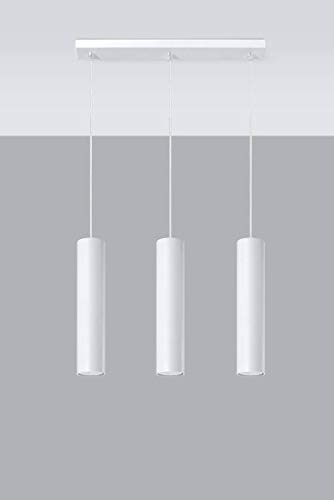 SOLLUX lighting Lagos 3L Lampada a sospensione | Design moderno con paralume cilindrico, stile industriale | Lampadina GU10 sostituibile, 3 x 40 W | Acciaio verniciato a polvere, bianco, 45x6x90 cm