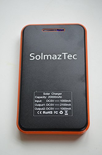 Solmaztec Portable Solar Power Bank charger High Capacity 20000 mAh with Bright LED Flashlight Dual USB output Fast Charging Battery Capacity Indicator