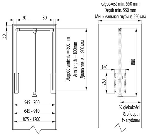Solmer LTD Armadio/camera da letto Lift/pull Down rail 830 - 1150 mm/regolabile/morbido ritorno