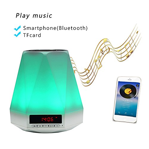 SOLMORE LED Luce Notturna Allarme Orologio e Bluetooth Speaker, lampada da tavolo supporto TF card, vivavoce e funzioni di temporizzazione Multi Funzione incassato batteria