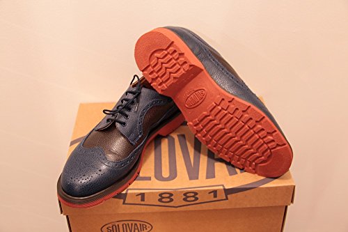 SOLOVAIR Indigo/Chocolate Brown 5 Eye Long Wing Brogue Shoe Stringata Hand-Made in England Blu-Marrone in Pelle Martellata Fondo Gomma Antiscivolo (7 (41), Blu-Marrone)