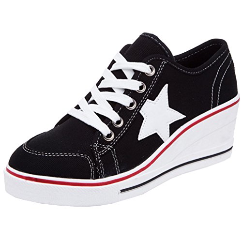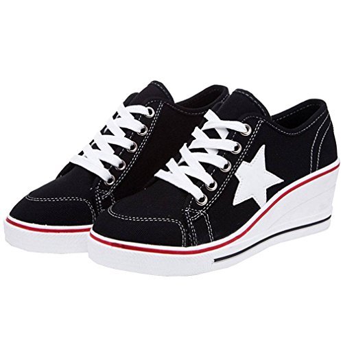 Solshine Scarpe da ginnastica da donna, in tela, sportive, basse, con zeppa, con lacci, taglia 35-43