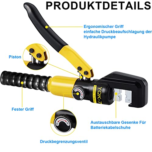 Solsop Pinza crimpatrice idraulica - Pinza crimpatrice idraulica con 9 set di crimpatura 4-70 mm² per capicorda in rame e alluminio