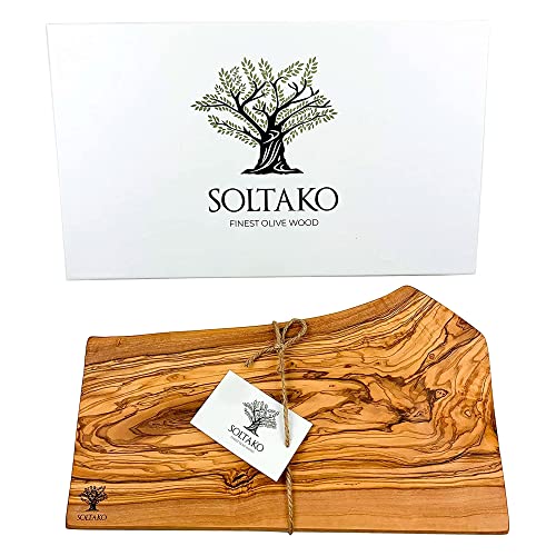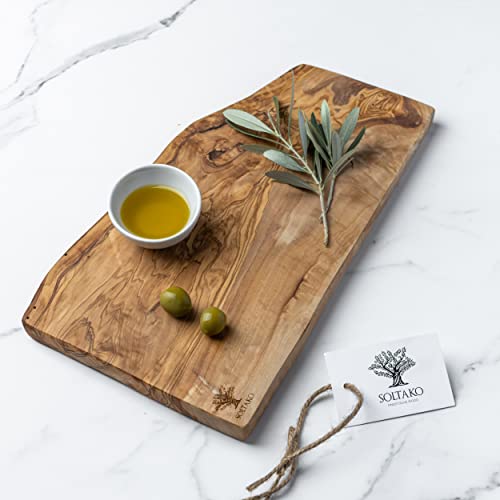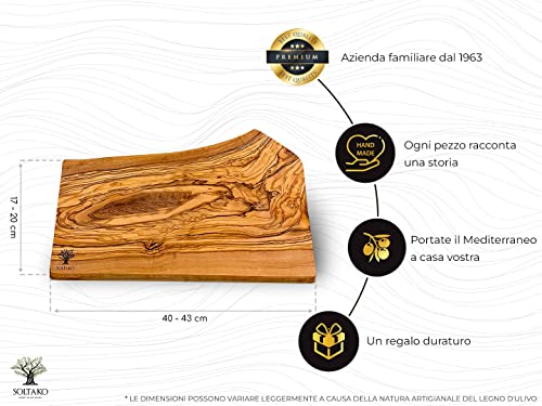 SOLTAKO Tagliere in Legno d'Ulivo Rustico - Tagliere da Cucina per Formaggi Rustici - Tagliere Professionale Grande - Tagliere per Salumi, Aperitivo, Carne, Verdure, Pizza (Lunghezza di 40-43 cm)