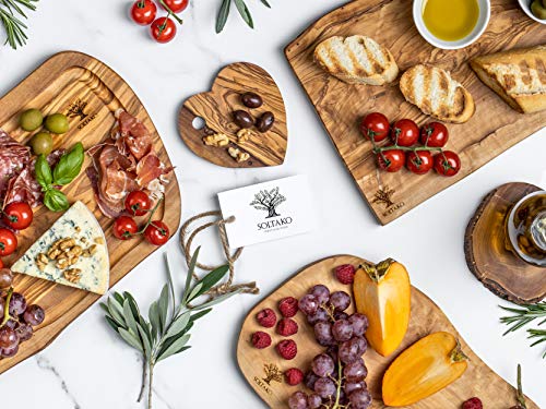 SOLTAKO Tagliere in Legno d'Ulivo Rustico - Tagliere da Cucina per Formaggi Rustici - Tagliere Professionale Grande - Tagliere per Salumi, Aperitivo, Carne, Verdure, Pizza (Lunghezza di 35-38 cm)