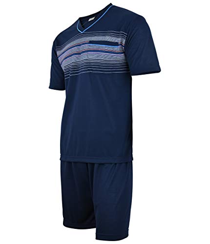 Soltice Pigiama da uomo in due pezzi, pigiama corto in set, biancheria da notte a righe in 100% cotone (da M a 5XL), [M4] Turchese, XXL