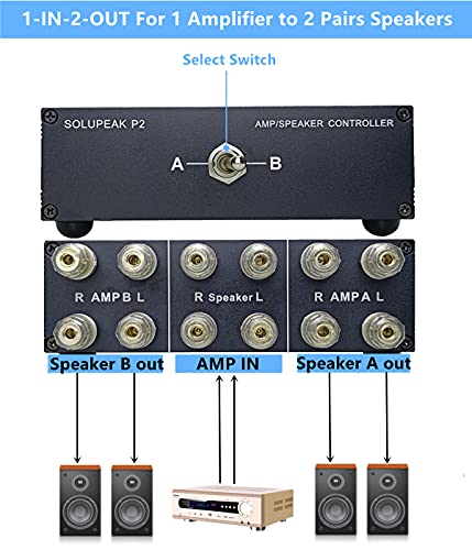 SOLUPEAK P2 2 (1)-in-1 (2)-Out Amplificatore Altoparlante Selettore Interruttore Splitter 2-Way Altoparlante Controllo Combinatore Box