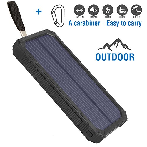 Soluser Caricatori solari 15000mAh, Portatile Dual USB Batteria Solare Caricatore Veloce Batteria Esterna, Solar Phone Power Bank Caricabatterie con Torcia 6 LED per Fotocamera Smartphone Tablet