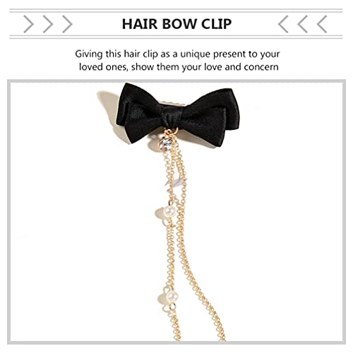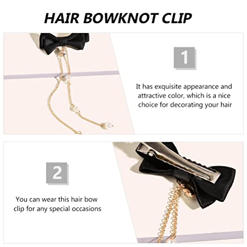 SOLUSTRE Arco Clip Barrette con Pendenti Catena Catena Clip Dolce Elegante Arco Clip Bowknot Barrette per La Festa di Nozze Bride Girl Little Teen ( 2 Pz Nero )