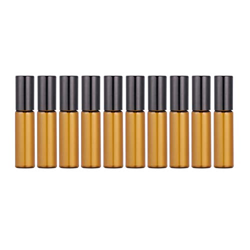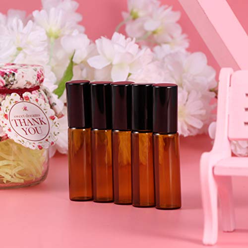 Solustre Flaconi Roll-On di Olio Essenziale di Vetro da 10 Pezzi con Palline in Acciaio E Coperchio Flaconi per Il Trucco Cosmetico Ricaricabile con Coperchio (5 Ml)