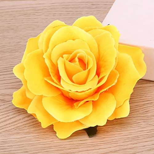 SOLUSTRE Mollette 2 In 1 Spilla Per Fermagli Per Con Fiore A Forma Di Rosa Grande Artificiale Per Le Donne Matrimonio Festa Giallo Decorazioni Hawaiane
