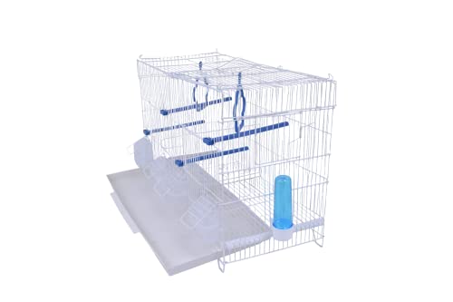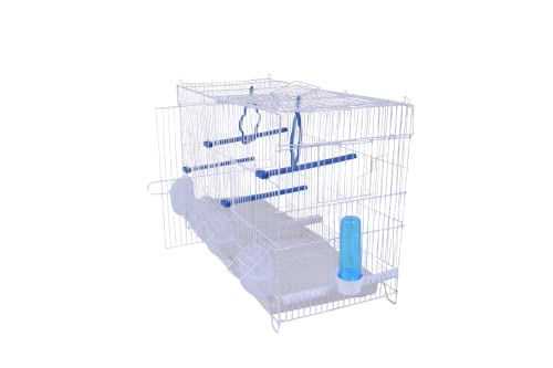Pet's Solution - Gabbia Cova per Uccelli, Ideale per Allevamento e Predisposizione Modulare, con Divisorio, Griglia e Vassoio Estraibili, 1 Beverino, 4 Posatoi, 4 Mangiatoie e 2 Altalene - Bianco