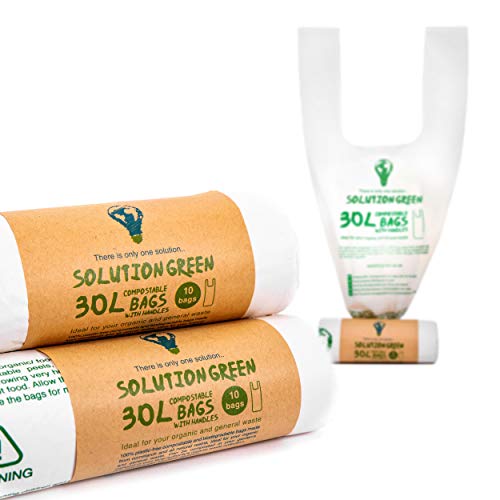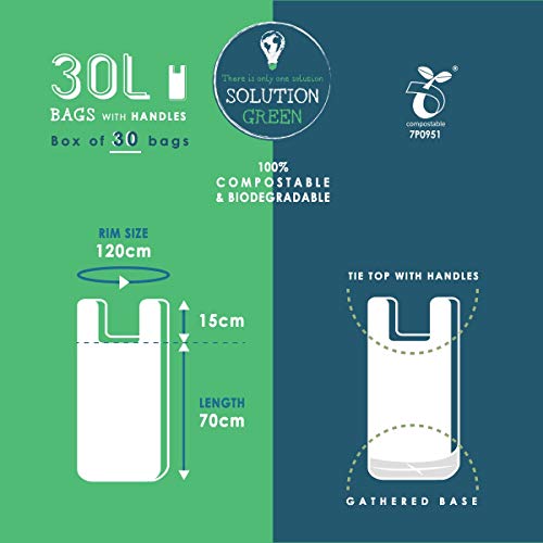Solution Green | 30x Sacchetti 30 Litri Biodegradabili Con Maniglie Per Pattumiera Umido Da Cucina | Compostabili e Organici per Rifiuti Organici e Rifiuti Generali, Antistrappo e Tenuta