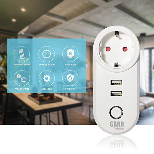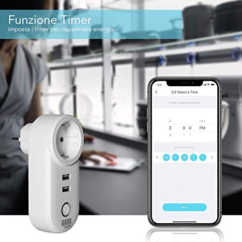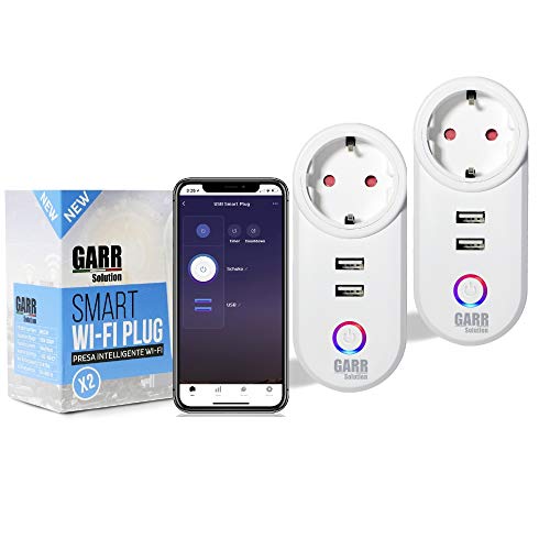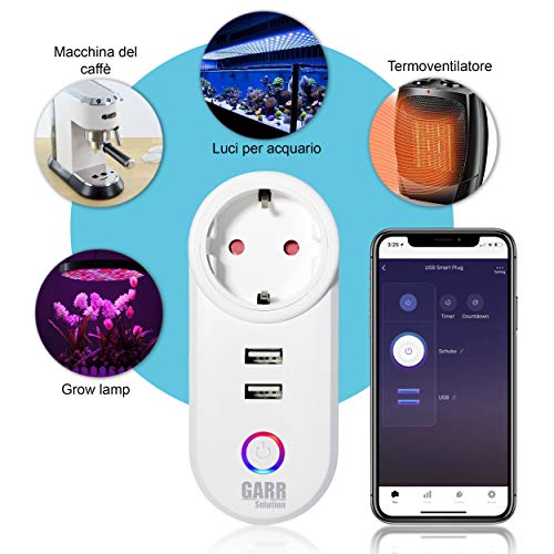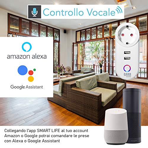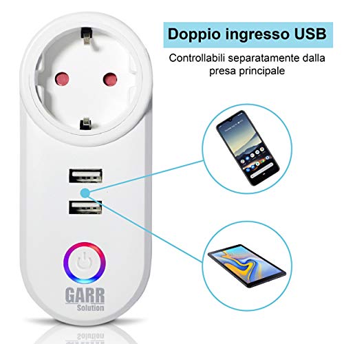 GARR Solution Presa Smart Wifi Compatibile Alexa e Google Home, 2pz - Prese Schuko Comandate Separatamente da Usb - 2400W 16A