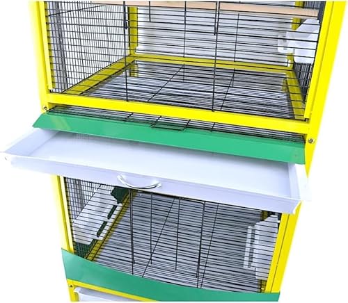 Pet's Solution - Voliera da Interno per Uccelli a 2 Piani con Carrello, 2 Posatoi in Legno, 4 Mangiatoie, Griglie e Vassoi Estraibili - Giallo e Verde
