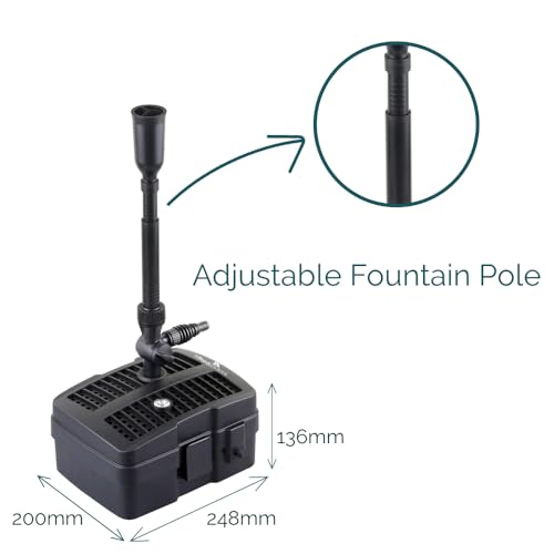 Include pompa dell'acqua da 1000 litri/ora, sterilizzatore UV da 5W e filtro per laghetti.