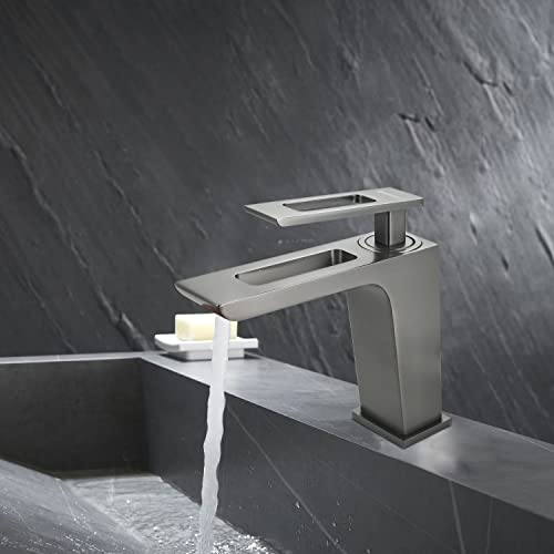 SOLVEX Rubinetto Bagno Cascata,Miscelatore Lavabo Monocomando Rettangolare,Ottone - Grigio Design Creativo Elegante Stile Moderno,Valvola in Ceramica,Fredda e Calda Regolabile,SP-12023-G