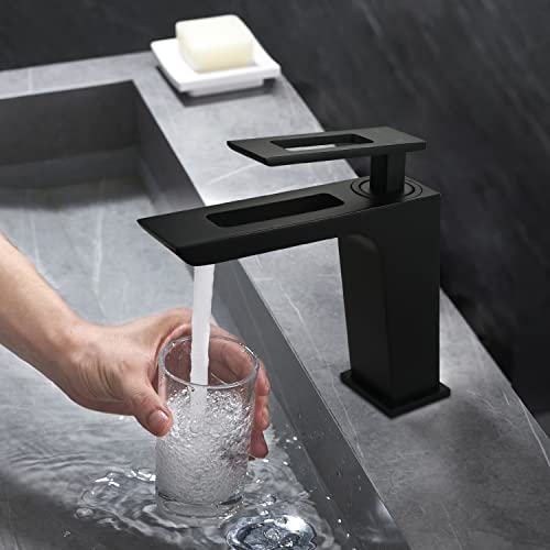 SOLVEX Rubinetto Bagno Cascata,Miscelatore Lavabo Monocomando Rettangolare,Ottone - Nero Design Creativo Elegante Stile Moderno,Valvola in Ceramica,Fredda e Calda Regolabile,SP-12023-N