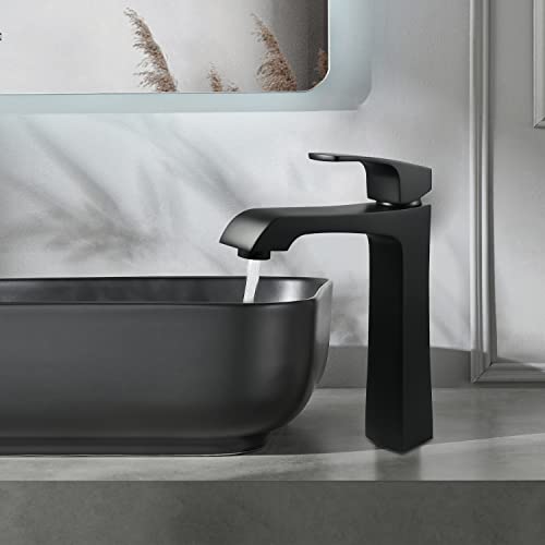 SOLVEX Rubinetto per Lavabo Alto,Rubinetto Monocomando per Lavabo Rettangolare con Aeratore,Ottone - Nero Stile Moderno,Valvola in Ceramica,Miscelatore Lavabo Bagno,Fredda e Calda Regolabile,SP-12015