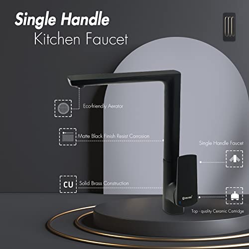 SOLVEX Rubinetto Miscelatore Lavello Nero Da Cucina, Miscelatore Monocomando,Girevole a 360° Rubinetto Lavello Cucina, Rubinetto Da Cucina, Ottone Cromato, Miscelatore Per Lavello Cucina,SP-11002-N
