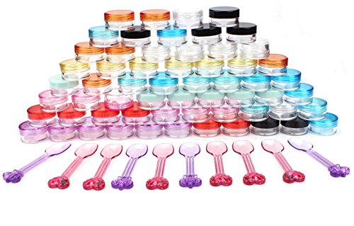 Someamy 50 pezzi di plastica vasetti in vaso Contenitore cosmetico vuoto +10 pezzi cucchiaio