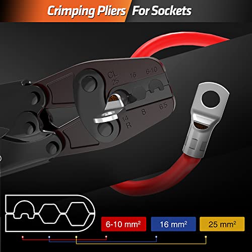 SOMELINE - Set di capicorda per cavi, 6 - 25 mm², capicorda ad anello, con pinza a crimpatura automatica (M5-M10)