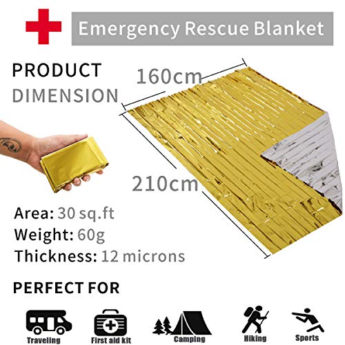 1. Il pacchetto include:5 X Coperta d'emergenza. Essenziale per sacchetti civile bug out, go-Sacchetti e casa/auto-Kit di emergenza.