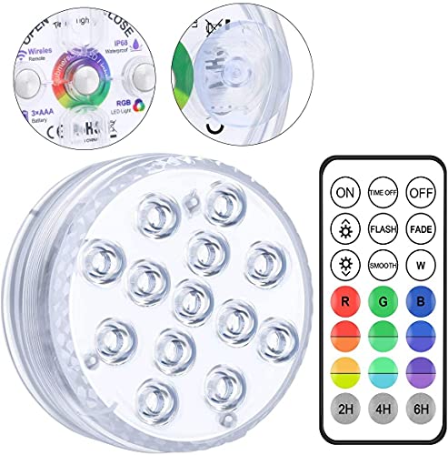 LED Sommergibili con Telecomando RF, 3 Magnete, Ventose, 13-LED RGB Sommergibili Luci Piscina, Luce Subacquea a LED Impermeabil IP68, Luci per Laghetto Vasca da bagno Doccia Vasca idromassaggio Feste